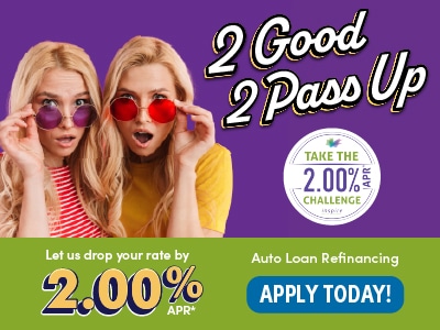 Bring us your current auto loan and we’ll try to beat your rate by 2% or more. It’s quick, easy, and could save you hundreds a year.